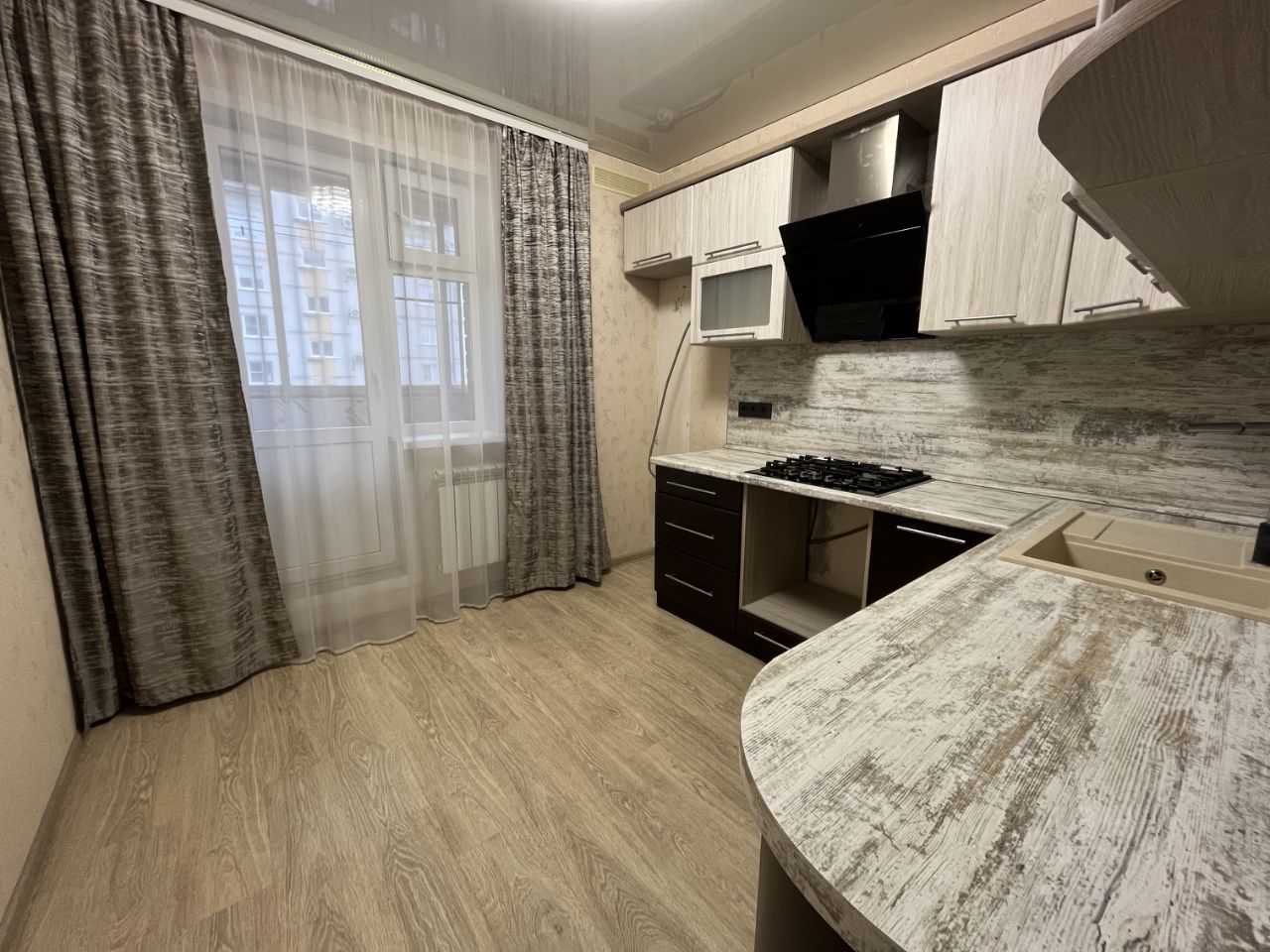 Кухонный гарнитур остается новым владельцам.