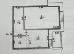 Общая площадь составляет 39.1 кв. м, из которых жилая занимает 18.7 кв.