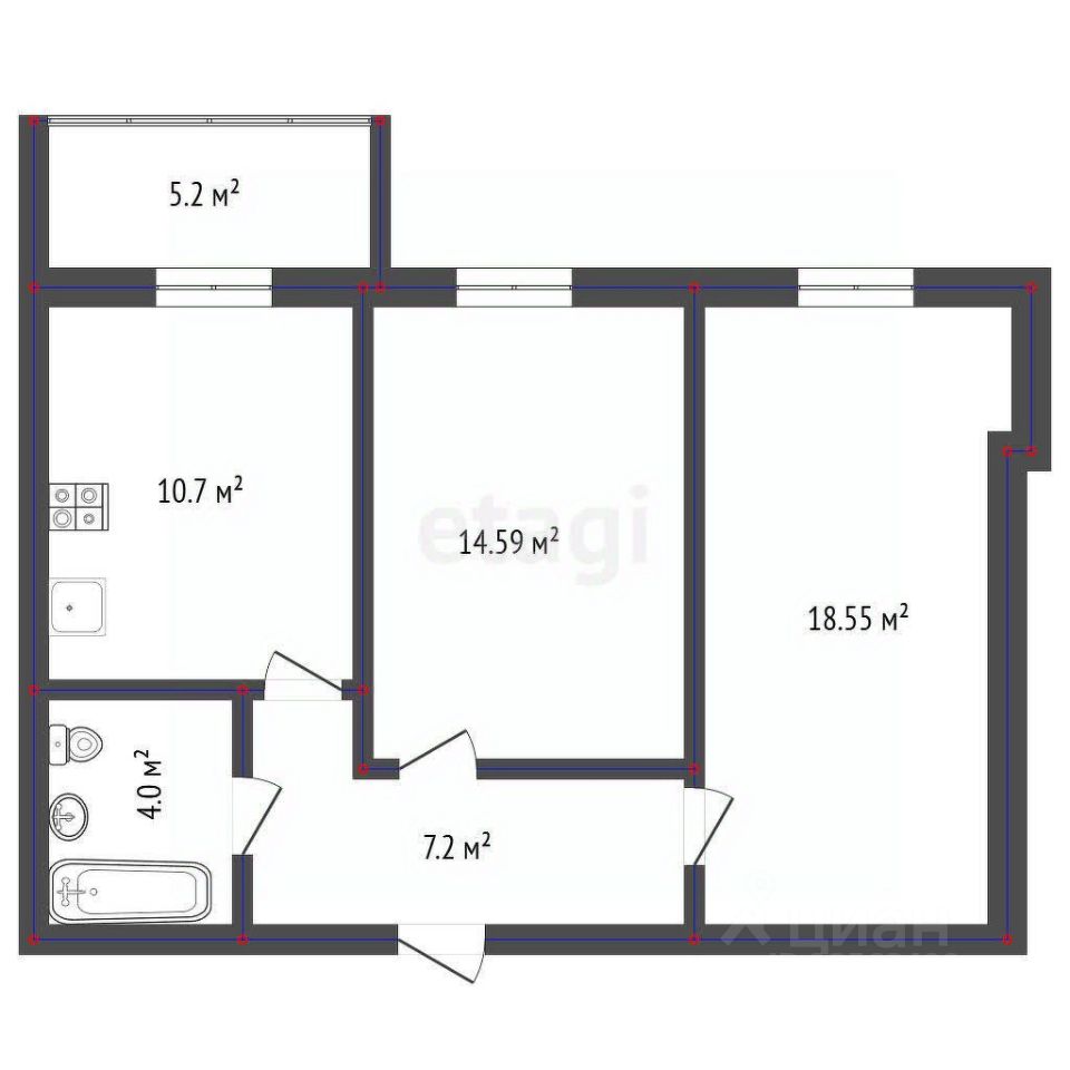 • Просторная кухня: 11.8 м² с выходом на лоджию