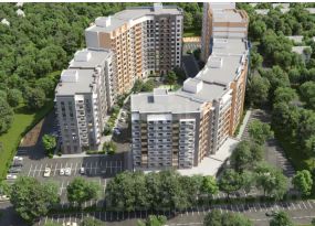 В концепции комплекса гармонично сочетаются благоустроенная территория, игровой детский комплекс, отдельные выделенные зоны отдыха. Два корпуса жилого дома стоят полукругом друг напротив друга, создавая камерность и уединенность внутридворового пространства.