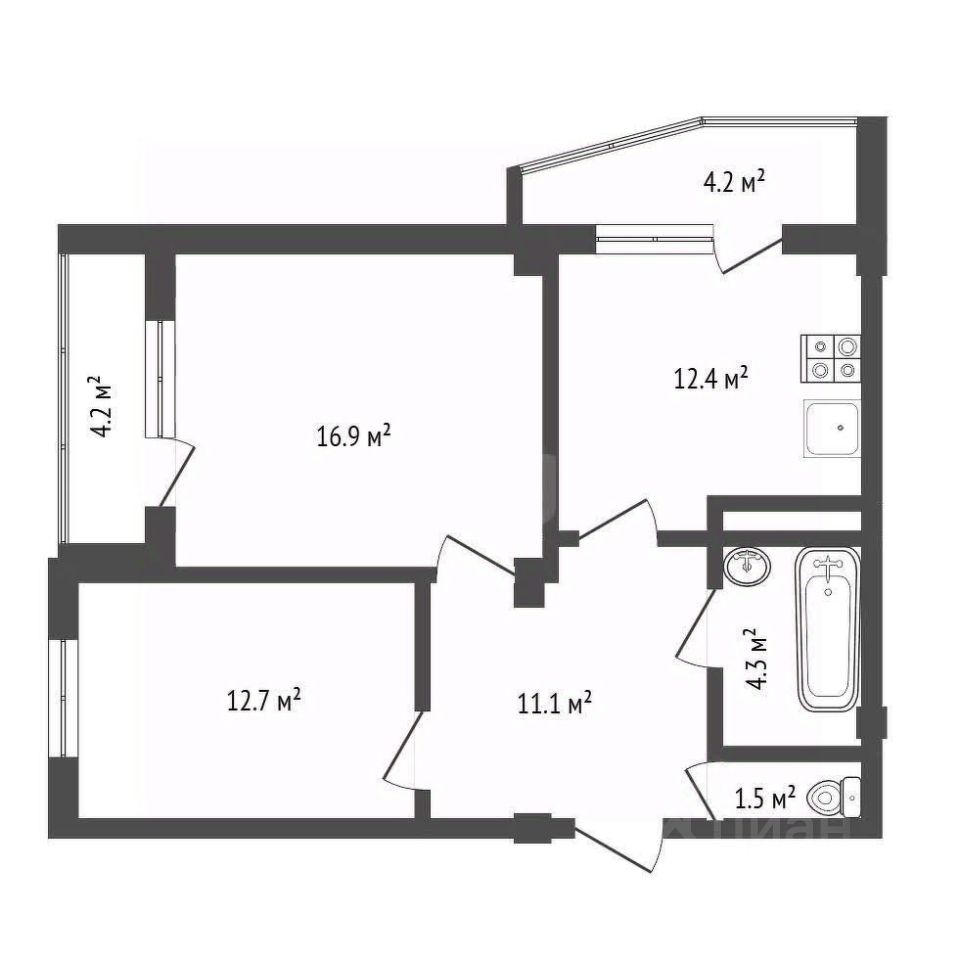 Рациональная планировка с просторной кухней раздельным санузлом и двумя обзорными панорамными лоджиями.