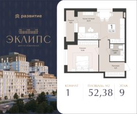 В жилом доме, расположенном в историческом центре на первой линии реки Воронеж, продается 1-комнатная квартира площадью 52.38 кв. м с черновой отделкой. Квартира расположена на 9 этаже жилого дома бизнес-класса "Эклипс" от федерального застройщика ГК "Развитие".