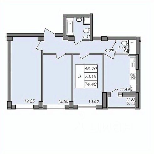 Общая площадь73 м²