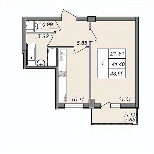 Общая площадь43 м²