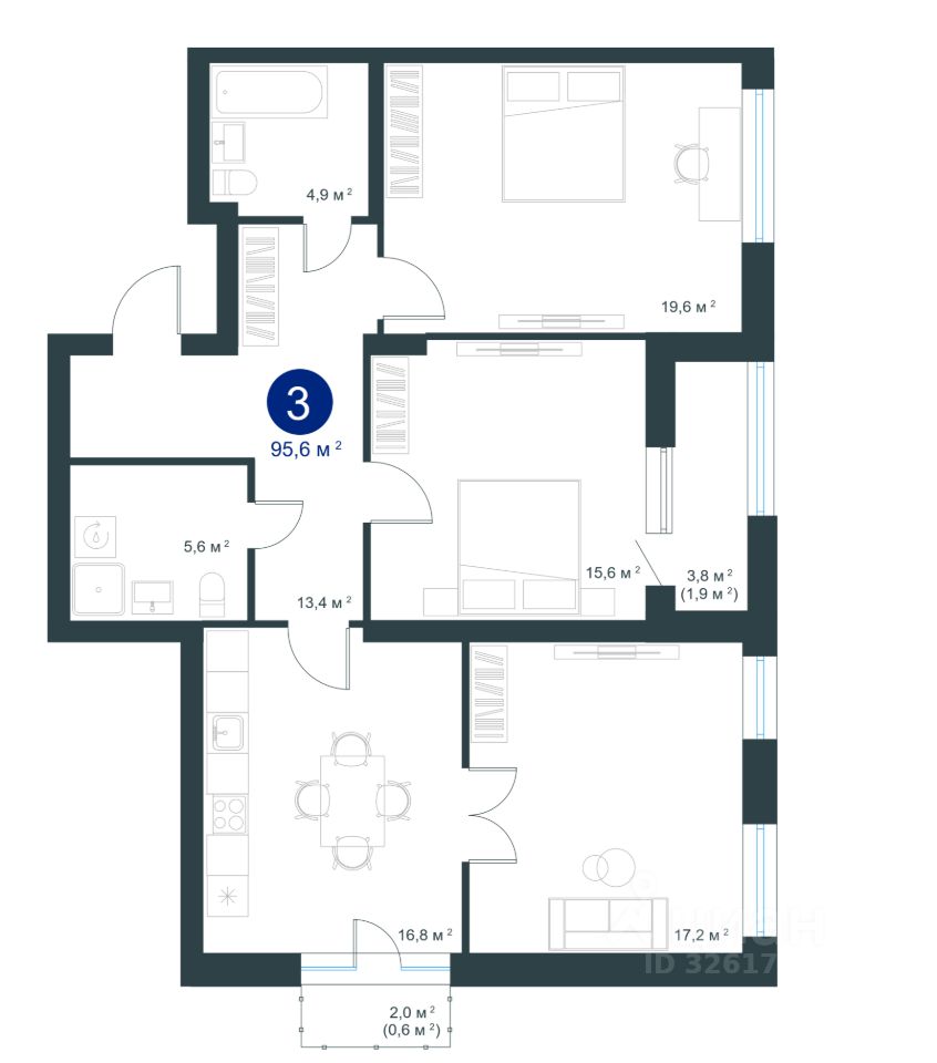 Общая площадь95,6 м²