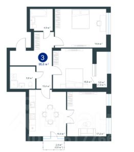 Продается 3-комн. квартира, 95,6 м²