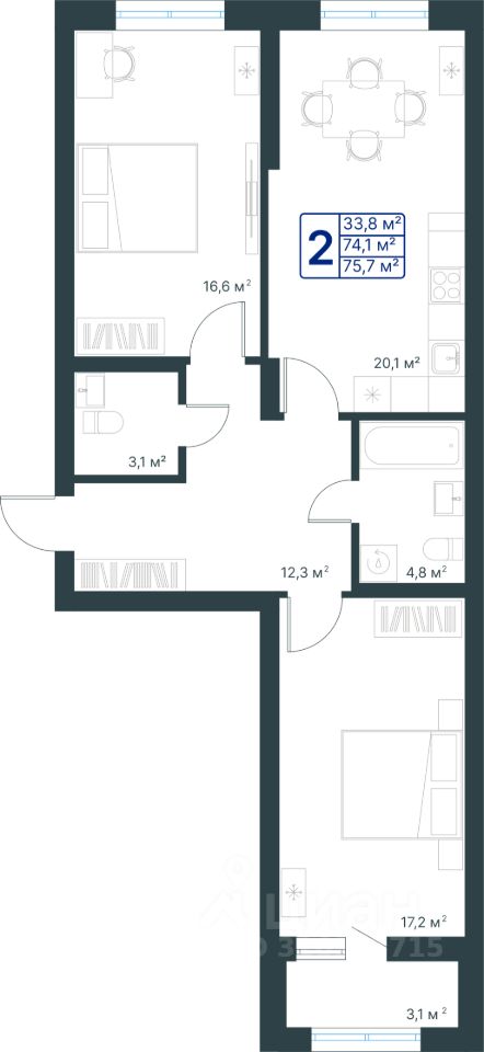 Общая площадь75,7 м²