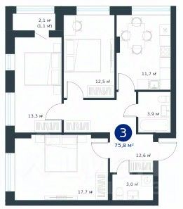 Общая площадь75,7 м²