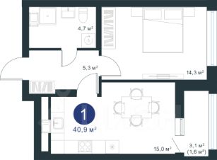 Общая площадь40,9 м²