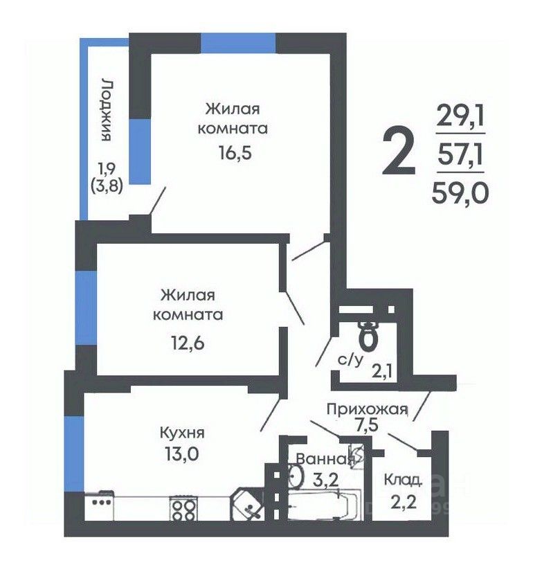 Разнообразные варианты от 39.7 до 89.9 кв.м. Отсутствие бесполезных зон - каждый метр задействован с пользой. Окна на обе стороны. Большая кухня - вам всегда будет просторно.