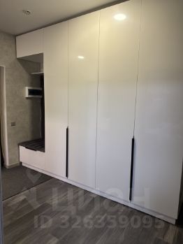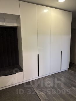 В квартире остается кухонный гарнитур со встроенной бытовой техникой: варочная поверхность и духовой шкаф, посудомоечная машина. В спальне и в коридоре вместительные шкафы под потолок; двуспальная "парящая" кровать с тумбочками, тумба под телевизор в гостиной и шкаф-купе в детской.