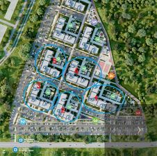 Жилой комплекс расположен в экологически чистом районе, напротив Сити-парка "Град", в пяти минутах езды от города. Рядом лес и чистый воздух. Это уютный жилой квартал, с впечатляющей территорией и продуманной философией жилья.