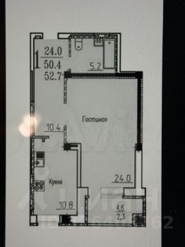 (Комнатa - 24 кв.м, кухня - 10,8 кв.м, пpихожaя - 10 кв.м, C/у 5,2 - кв.м, балкон - 4.6 кв.м)