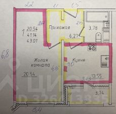 Продается однокомнатная квартира площадью 40,5 квадратных метров в Коминтерновском районе г. Воронежа.