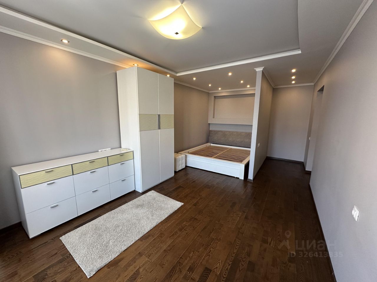 В квартире продуманная планировка - есть альков для размещения двуспальной кровати (на фото кровать 180х200), место под шкаф-гардеробную, система хранения на балконе. Кухня оборудована встроенной техникой: стиральная машина, холодильник, СВЧ, духовой шкаф.
