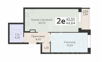 2х-комн. квартира (ЕВРОФОРМАТ) в ЖК Никитинские сады с кухней-гостинной 21м и гардеробной.