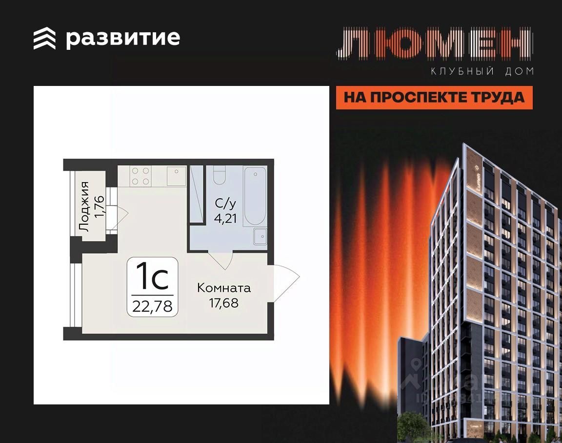 Продаётся студия в строящемся доме (Дом 1), срок сдачи: IV-кв. 2027, общей площадью 22.78 кв.м., на 15 этаже. Новый жилой комплекс от группы компаний "Развитие" расположен по адресу: г. Воронеж, по ул. пр-кт Труда.