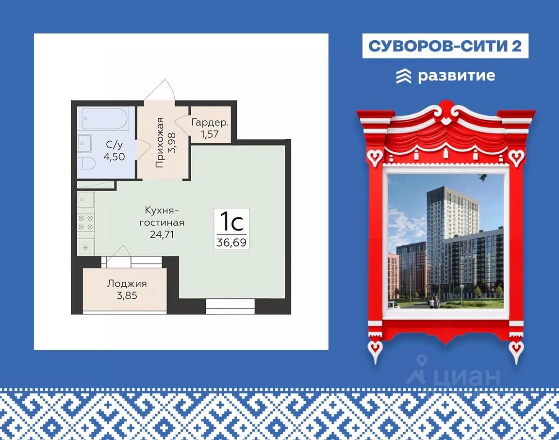 Жилой комплекс "Суворов Сити II" — продолжение современного масштабного проекта "Суворов Сити", находящегося в спальном районе в четырех километрах от центра города. Проект сочетает удачное расположение с удобными планировками, актуальным дизайном и приватным двором. Расположение Пешком: — 510 минут Автобусные остановки; — 12 минут Школа 50; — 15 минут Детский сад 174; — 20 минут ТРЦ "Армада". На автомобиле: — 1 минута улица Матросова; — 5 минут улица Ворошилова, проспект Патриотов; — 10 минут Вогрэсовский мост; — 15 минут проспект Революции, Чернавский мост, вокзал "Воронеж-1"; — 30 минут выезд на М-4; — 50 минут аэропорт "Воронеж". Лобби — Колясочная; — Лапомойка для питомцев; — Входные группы с окнами в пол; — Лифты с возможностью спуска в подземный паркинг на 465 машиномест. Благоустройство — Двор закрыт от прохожих и транспорта; — Доступ на внутреннюю территорию, в парадные и в паркинг по ключам; — Круглосуточное видеонаблюдение; — Собственная инфраструктура (важные магазины и сервисы) на первом этаже здания; — Детский сад во дворе ЖК; — Пешеходная аллея; — Места для отдыха со скамейками и перголами; — Детские игровые и спортивные площадки; — Навигационная подсветка в темное время суток. Окружение — Спокойный спальный район; — Близко магазины, кафе, медклиник, салонов красоты, аптек; — В шаговой доступности скверы, сады, ТРЦ, стадион. О застройщике Федеральный застройщик ГК "Развитие" лидирует по количеству возводимых объектов и входит в ТОП-20 девелоперов России. За 10 лет на рынке компания ввела в эксплуатацию свыше 700 тыс. кв. м жилья, еще столько же находится в стадии строительства. В портфеле — 30 завершенных проектов и более десятка тысяч заселенных квартир. Девелопер сотрудничает с ведущими отраслевыми партнерами, включая "Северсталь" и "Технониколь". "Развитие" специализируется на строительстве жилых комплексов и микрорайонов, развитии инфраструктуры и создании комфортной городской среды. Девелопер реализует проекты в Воронеже, Москве и области, Ленинградской области, Крыму, Орле и Самаре. Основные форматы — ЖК комфорт- и бизнес-класса, апарт-отели, прибрежные премиальные комплексы и жилые кластеры с коммерцией, парковками и благоустроенными дворами.