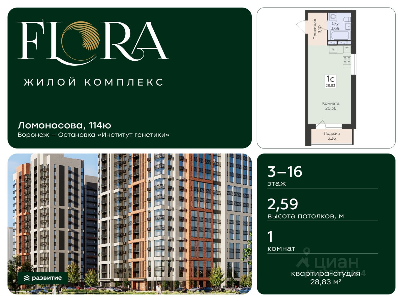Скидки до 11%, семейная ипотека, рассрочка 0% до 12 месяцев. Жилой комплекс "FLORA" - проект комфорт-класса, расположенный в одном из самых привлекательных и зелёных районов Воронежа на улице Ломоносова. Государственный природный заказник, множество образовательных учреждений с качественным уровнем обучения, большой коммерческий фронт для развития малого и среднего бизнеса, центры здоровья и спорта всё это располагается в шаге от жилого комплекса. А свободный доступ к главным городским автомагистралям и транспортным развязкам позволит быть мобильными и смело прокладывать маршруты в любую точку города на автомобиле или общественном транспорте, на велосипеде или пешком. Двор FLORA — это безопасное мультифункциональное пространство для жителей разных возрастов и интересов. Игровые комплексы, установленные на безопасном тартановом покрытии, дарят детям пространство, где они могут быть шумными, активными, неугомонными и желающим изучать мир во всех его проявлениях. Для тех, кто предпочитает активный образ жизни, в жилом комплексе FLORA предусмотрено workout-пространство на свежем воздухе. Продуманные планировочные решения квартир в жилом комплексе FLORA полностью отвечают потребностям жизни современных городских жителей: - комфортные студии отличный выбор для амбициозных студентов - просторные однокомнатные квартиры с гардеробными комнатами для молодых семей - двухкомнатные квартиры c гардеробными и двумя санузлами для семей с детьми Ввод в эксплуатацию запланирован в 4 квартале 2029 года согласно проектной документации. Покупая квартиру в ЖК "FLORA" от ГК Развитие, вы получаете дополнительно БЕСПЛАТНО: - помощь в одобрении и получении ипотеки с минимальной процентной ставкой. - ПОЛНОЕ ЮРИДИЧЕСКОЕ СОПРОВОЖДЕНИЕ сделки купли-продажи - Помощь в реализации МАТЕРИНСКОГО капитала. - Консультация и показ объекта в любое УДОБНОЕ ВРЕМЯ - Помощь в ПОДГОТОВКЕ И СБОРЕ ВСЕХ ДОКУМЕНТОВ, необходимых для покупки.