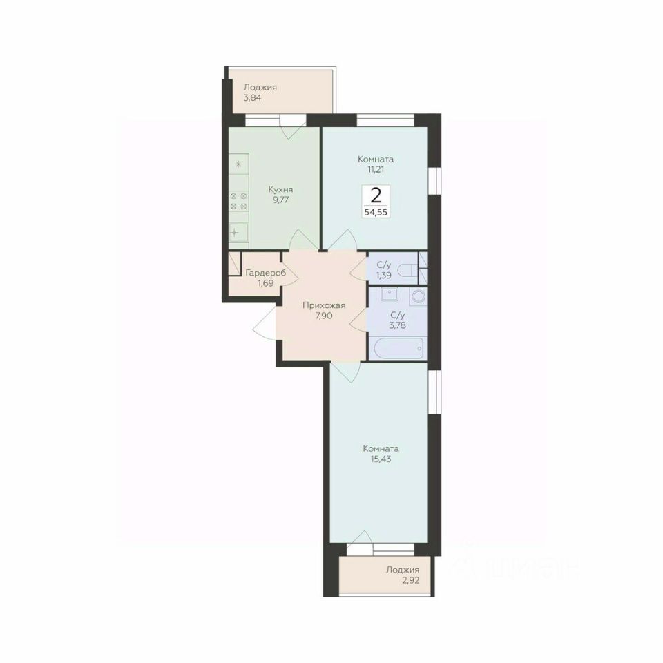 Общая площадь54,55 м²