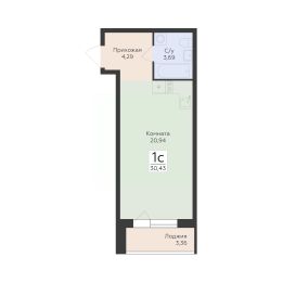 - просторные однокомнатные квартиры с гардеробными комнатами для молодых семей