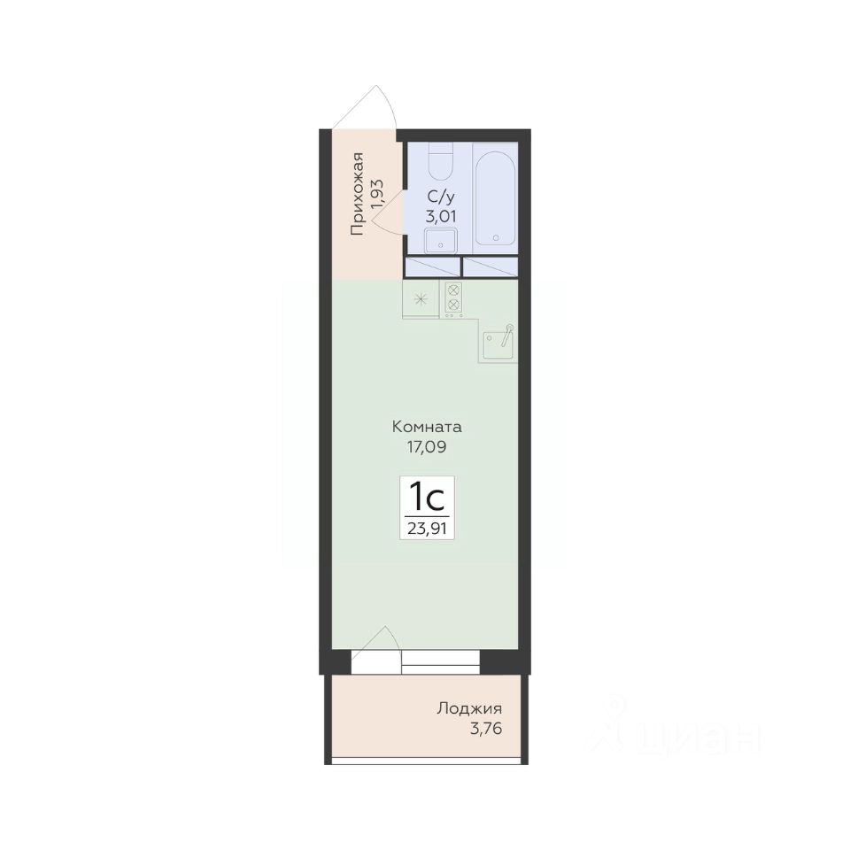 Общая площадь23,91 м²