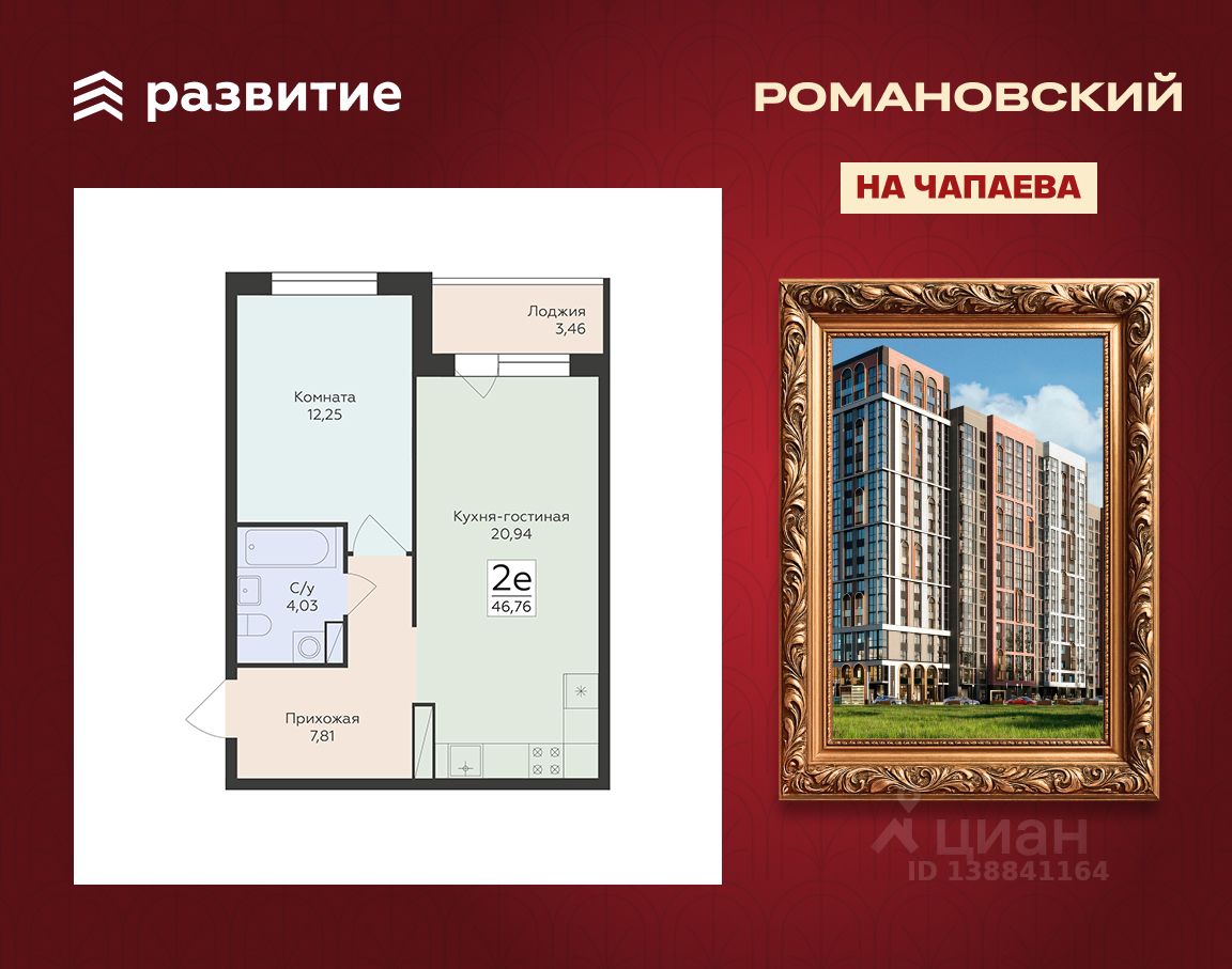 Жилой комплекс "Романовский" - проект класса "комфорт плюс", расположенный на улице Чапаева, в месте, где история встречается с современностью. Соседство с объектом культурного наследия "Водонапорная башня Романовской слободы" делает жилой комплекс воплощением статусности, комфорта и умиротворения. Выбирайте спокойную размеренную жизнь в шумном мегаполисе, не отказываясь от привычных занятий и увлечений. Прогулочный бульвар, стадион для спорта на свежем воздухе, супермаркеты, креативный кластер здесь есть всё, что нужно для полноценной наполненной жизни. Территория двора продумана так, чтобы каждый нашёл здесь занятие по душе. Игровые площадки с безопасным покрытием зонированы по возрасту и создают все условия для игр и общения детей. Современная спортивная площадка с воркаут-зоной поможет поддерживать себя в форме адептам спортивного образа жизни. Планировочные решения квартир спроектированы с учётом современных тенденций и удовлетворяют все потребности будущих жителей. Пространство каждой квартиры продумано до мелочей: • эргономичные студии с зонами для хранения в прихожей; • классические однокомнатные квартиры с гардеробными и большими кухнями; • двухкомнатные квартиры евро-формата с мастер-спальнями гардеробными комнатами; • просторные трёх- и четырёхкомнатные квартиры классического и евро-формата с гостиными, гардеробными и двумя санузлами. В холлах первых этажей спроектированы помещения для колясок и комнаты-лапомойки для ваших питомцев. На каждом этаже ЖК "Романовский" мы предусмотрели кладовые комнаты для хранения сезонных вещей. В проекте будет построен подземный паркинг и наземная парковка на прилегающей территории, рассчитанная на 258 мест. Несмотря на то, что парковка находится в непосредственной близости к подъездам, она не нарушает концепцию двора без машин. Ввод в эксплуатацию запланирован в 4 квартале 2027 года согласно проектной документации. Покупая квартиру в ЖК "Романовский" от ГК Развитие, вы получаете дополнительно БЕСПЛАТНО: - помощь в одобрении и получении ипотеки с минимальной процентной ставкой. - ПОЛНОЕ ЮРИДИЧЕСКОЕ СОПРОВОЖДЕНИЕ сделки купли-продажи - Помощь в реализации МАТЕРИНСКОГО капитала. - Консультация и показ объекта в любое УДОБНОЕ ВРЕМЯ - Помощь в ПОДГОТОВКЕ И СБОРЕ ВСЕХ ДОКУМЕНТОВ, необходимых для покупки.