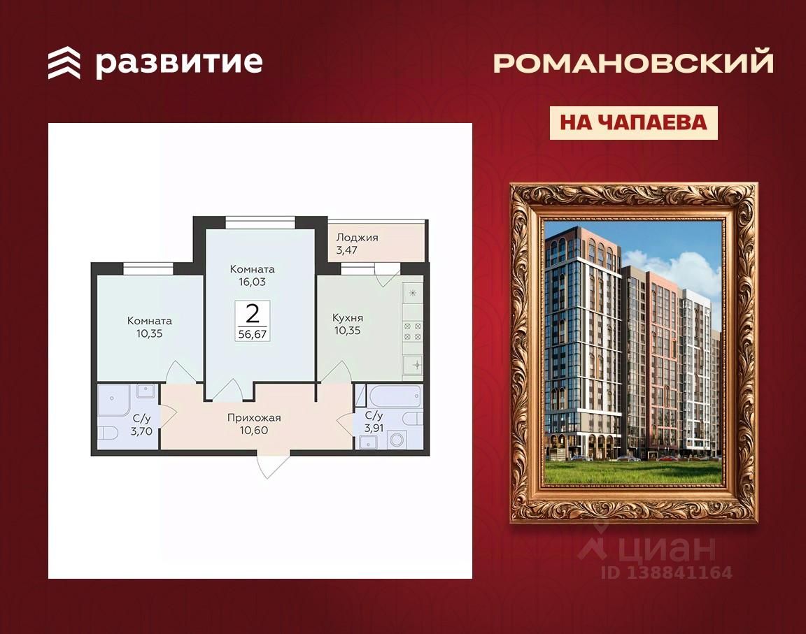 Жилой комплекс "Романовский" - проект класса "комфорт плюс", расположенный на улице Чапаева, в месте, где история встречается с современностью. Соседство с объектом культурного наследия "Водонапорная башня Романовской слободы" делает жилой комплекс воплощением статусности, комфорта и умиротворения. Выбирайте спокойную размеренную жизнь в шумном мегаполисе, не отказываясь от привычных занятий и увлечений. Прогулочный бульвар, стадион для спорта на свежем воздухе, супермаркеты, креативный кластер здесь есть всё, что нужно для полноценной наполненной жизни. Территория двора продумана так, чтобы каждый нашёл здесь занятие по душе. Игровые площадки с безопасным покрытием зонированы по возрасту и создают все условия для игр и общения детей. Современная спортивная площадка с воркаут-зоной поможет поддерживать себя в форме адептам спортивного образа жизни. Планировочные решения квартир спроектированы с учётом современных тенденций и удовлетворяют все потребности будущих жителей. Пространство каждой квартиры продумано до мелочей: • эргономичные студии с зонами для хранения в прихожей; • классические однокомнатные квартиры с гардеробными и большими кухнями; • двухкомнатные квартиры евро-формата с мастер-спальнями гардеробными комнатами; • просторные трёх- и четырёхкомнатные квартиры классического и евро-формата с гостиными, гардеробными и двумя санузлами. В холлах первых этажей спроектированы помещения для колясок и комнаты-лапомойки для ваших питомцев. На каждом этаже ЖК "Романовский" мы предусмотрели кладовые комнаты для хранения сезонных вещей. В проекте будет построен подземный паркинг и наземная парковка на прилегающей территории, рассчитанная на 258 мест. Несмотря на то, что парковка находится в непосредственной близости к подъездам, она не нарушает концепцию двора без машин. Ввод в эксплуатацию запланирован в 4 квартале 2027 года согласно проектной документации. Покупая квартиру в ЖК "Романовский" от ГК Развитие, вы получаете дополнительно БЕСПЛАТНО: - помощь в одобрении и получении ипотеки с минимальной процентной ставкой. - ПОЛНОЕ ЮРИДИЧЕСКОЕ СОПРОВОЖДЕНИЕ сделки купли-продажи - Помощь в реализации МАТЕРИНСКОГО капитала. - Консультация и показ объекта в любое УДОБНОЕ ВРЕМЯ - Помощь в ПОДГОТОВКЕ И СБОРЕ ВСЕХ ДОКУМЕНТОВ, необходимых для покупки.