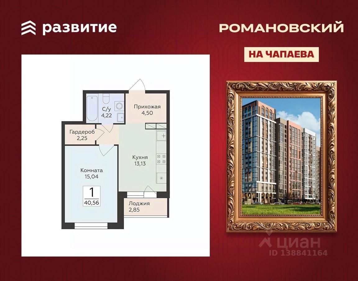 Жилой комплекс "Романовский" - проект класса "комфорт плюс", расположенный на улице Чапаева, в месте, где история встречается с современностью. Соседство с объектом культурного наследия "Водонапорная башня Романовской слободы" делает жилой комплекс воплощением статусности, комфорта и умиротворения. Выбирайте спокойную размеренную жизнь в шумном мегаполисе, не отказываясь от привычных занятий и увлечений. Прогулочный бульвар, стадион для спорта на свежем воздухе, супермаркеты, креативный кластер здесь есть всё, что нужно для полноценной наполненной жизни. Территория двора продумана так, чтобы каждый нашёл здесь занятие по душе. Игровые площадки с безопасным покрытием зонированы по возрасту и создают все условия для игр и общения детей. Современная спортивная площадка с воркаут-зоной поможет поддерживать себя в форме адептам спортивного образа жизни. Планировочные решения квартир спроектированы с учётом современных тенденций и удовлетворяют все потребности будущих жителей. Пространство каждой квартиры продумано до мелочей: • эргономичные студии с зонами для хранения в прихожей; • классические однокомнатные квартиры с гардеробными и большими кухнями; • двухкомнатные квартиры евро-формата с мастер-спальнями гардеробными комнатами; • просторные трёх- и четырёхкомнатные квартиры классического и евро-формата с гостиными, гардеробными и двумя санузлами. В холлах первых этажей спроектированы помещения для колясок и комнаты-лапомойки для ваших питомцев. На каждом этаже ЖК "Романовский" мы предусмотрели кладовые комнаты для хранения сезонных вещей. В проекте будет построен подземный паркинг и наземная парковка на прилегающей территории, рассчитанная на 258 мест. Несмотря на то, что парковка находится в непосредственной близости к подъездам, она не нарушает концепцию двора без машин. Ввод в эксплуатацию запланирован в 4 квартале 2027 года согласно проектной документации. Покупая квартиру в ЖК "Романовский" от ГК Развитие, вы получаете дополнительно БЕСПЛАТНО: - помощь в одобрении и получении ипотеки с минимальной процентной ставкой. - ПОЛНОЕ ЮРИДИЧЕСКОЕ СОПРОВОЖДЕНИЕ сделки купли-продажи - Помощь в реализации МАТЕРИНСКОГО капитала. - Консультация и показ объекта в любое УДОБНОЕ ВРЕМЯ - Помощь в ПОДГОТОВКЕ И СБОРЕ ВСЕХ ДОКУМЕНТОВ, необходимых для покупки.