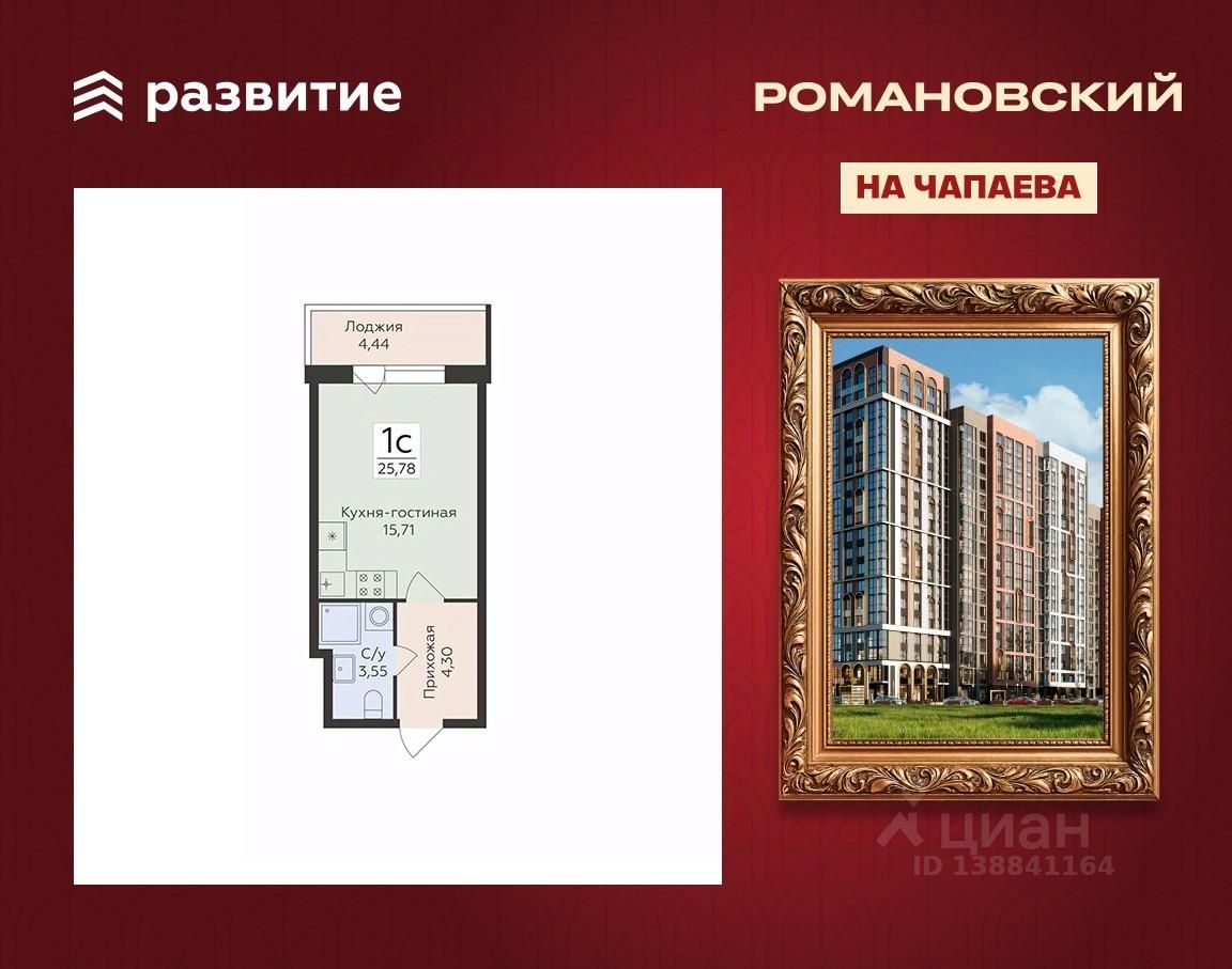 Жилой комплекс "Романовский" - проект класса "комфорт плюс", расположенный на улице Чапаева, в месте, где история встречается с современностью. Соседство с объектом культурного наследия "Водонапорная башня Романовской слободы" делает жилой комплекс воплощением статусности, комфорта и умиротворения. Выбирайте спокойную размеренную жизнь в шумном мегаполисе, не отказываясь от привычных занятий и увлечений. Прогулочный бульвар, стадион для спорта на свежем воздухе, супермаркеты, креативный кластер здесь есть всё, что нужно для полноценной наполненной жизни. Территория двора продумана так, чтобы каждый нашёл здесь занятие по душе. Игровые площадки с безопасным покрытием зонированы по возрасту и создают все условия для игр и общения детей. Современная спортивная площадка с воркаут-зоной поможет поддерживать себя в форме адептам спортивного образа жизни. Планировочные решения квартир спроектированы с учётом современных тенденций и удовлетворяют все потребности будущих жителей. Пространство каждой квартиры продумано до мелочей: • эргономичные студии с зонами для хранения в прихожей; • классические однокомнатные квартиры с гардеробными и большими кухнями; • двухкомнатные квартиры евро-формата с мастер-спальнями гардеробными комнатами; • просторные трёх- и четырёхкомнатные квартиры классического и евро-формата с гостиными, гардеробными и двумя санузлами. В холлах первых этажей спроектированы помещения для колясок и комнаты-лапомойки для ваших питомцев. На каждом этаже ЖК "Романовский" мы предусмотрели кладовые комнаты для хранения сезонных вещей. В проекте будет построен подземный паркинг и наземная парковка на прилегающей территории, рассчитанная на 258 мест. Несмотря на то, что парковка находится в непосредственной близости к подъездам, она не нарушает концепцию двора без машин. Ввод в эксплуатацию запланирован в 4 квартале 2027 года согласно проектной документации. Покупая квартиру в ЖК "Романовский" от ГК Развитие, вы получаете дополнительно БЕСПЛАТНО: - помощь в одобрении и получении ипотеки с минимальной процентной ставкой. - ПОЛНОЕ ЮРИДИЧЕСКОЕ СОПРОВОЖДЕНИЕ сделки купли-продажи - Помощь в реализации МАТЕРИНСКОГО капитала. - Консультация и показ объекта в любое УДОБНОЕ ВРЕМЯ - Помощь в ПОДГОТОВКЕ И СБОРЕ ВСЕХ ДОКУМЕНТОВ, необходимых для покупки.