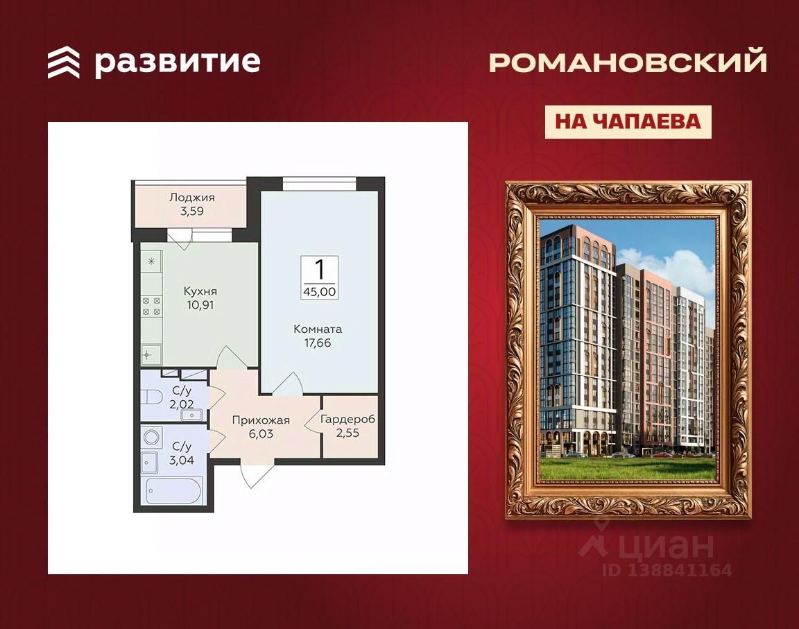 Жилой комплекс "Романовский" - проект класса "комфорт плюс", расположенный на улице Чапаева, в месте, где история встречается с современностью. Соседство с объектом культурного наследия "Водонапорная башня Романовской слободы" делает жилой комплекс воплощением статусности, комфорта и умиротворения. Выбирайте спокойную размеренную жизнь в шумном мегаполисе, не отказываясь от привычных занятий и увлечений. Прогулочный бульвар, стадион для спорта на свежем воздухе, супермаркеты, креативный кластер здесь есть всё, что нужно для полноценной наполненной жизни. Территория двора продумана так, чтобы каждый нашёл здесь занятие по душе. Игровые площадки с безопасным покрытием зонированы по возрасту и создают все условия для игр и общения детей. Современная спортивная площадка с воркаут-зоной поможет поддерживать себя в форме адептам спортивного образа жизни. Планировочные решения квартир спроектированы с учётом современных тенденций и удовлетворяют все потребности будущих жителей. Пространство каждой квартиры продумано до мелочей: • эргономичные студии с зонами для хранения в прихожей; • классические однокомнатные квартиры с гардеробными и большими кухнями; • двухкомнатные квартиры евро-формата с мастер-спальнями гардеробными комнатами; • просторные трёх- и четырёхкомнатные квартиры классического и евро-формата с гостиными, гардеробными и двумя санузлами. В холлах первых этажей спроектированы помещения для колясок и комнаты-лапомойки для ваших питомцев. На каждом этаже ЖК "Романовский" мы предусмотрели кладовые комнаты для хранения сезонных вещей. В проекте будет построен подземный паркинг и наземная парковка на прилегающей территории, рассчитанная на 258 мест. Несмотря на то, что парковка находится в непосредственной близости к подъездам, она не нарушает концепцию двора без машин. Ввод в эксплуатацию запланирован в 4 квартале 2027 года согласно проектной документации. Покупая квартиру в ЖК "Романовский" от ГК Развитие, вы получаете дополнительно БЕСПЛАТНО: - помощь в одобрении и получении ипотеки с минимальной процентной ставкой. - ПОЛНОЕ ЮРИДИЧЕСКОЕ СОПРОВОЖДЕНИЕ сделки купли-продажи - Помощь в реализации МАТЕРИНСКОГО капитала. - Консультация и показ объекта в любое УДОБНОЕ ВРЕМЯ - Помощь в ПОДГОТОВКЕ И СБОРЕ ВСЕХ ДОКУМЕНТОВ, необходимых для покупки.