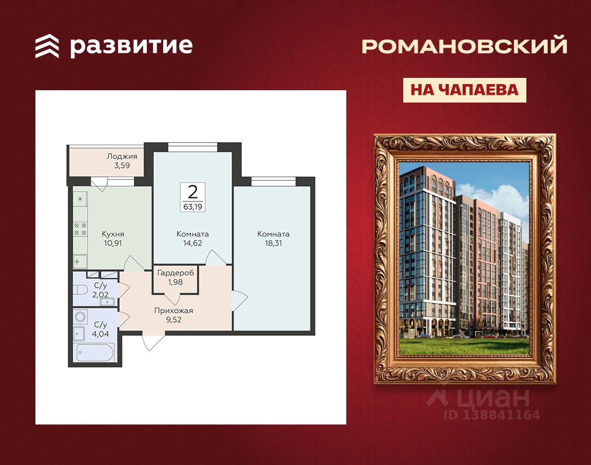 Жилой комплекс "Романовский" - проект класса "комфорт плюс", расположенный на улице Чапаева, в месте, где история встречается с современностью. Соседство с объектом культурного наследия "Водонапорная башня Романовской слободы" делает жилой комплекс воплощением статусности, комфорта и умиротворения. Выбирайте спокойную размеренную жизнь в шумном мегаполисе, не отказываясь от привычных занятий и увлечений. Прогулочный бульвар, стадион для спорта на свежем воздухе, супермаркеты, креативный кластер здесь есть всё, что нужно для полноценной наполненной жизни. Территория двора продумана так, чтобы каждый нашёл здесь занятие по душе. Игровые площадки с безопасным покрытием зонированы по возрасту и создают все условия для игр и общения детей. Современная спортивная площадка с воркаут-зоной поможет поддерживать себя в форме адептам спортивного образа жизни. Планировочные решения квартир спроектированы с учётом современных тенденций и удовлетворяют все потребности будущих жителей. Пространство каждой квартиры продумано до мелочей: • эргономичные студии с зонами для хранения в прихожей; • классические однокомнатные квартиры с гардеробными и большими кухнями; • двухкомнатные квартиры евро-формата с мастер-спальнями гардеробными комнатами; • просторные трёх- и четырёхкомнатные квартиры классического и евро-формата с гостиными, гардеробными и двумя санузлами. В холлах первых этажей спроектированы помещения для колясок и комнаты-лапомойки для ваших питомцев. На каждом этаже ЖК "Романовский" мы предусмотрели кладовые комнаты для хранения сезонных вещей. В проекте будет построен подземный паркинг и наземная парковка на прилегающей территории, рассчитанная на 258 мест. Несмотря на то, что парковка находится в непосредственной близости к подъездам, она не нарушает концепцию двора без машин. Ввод в эксплуатацию запланирован в 4 квартале 2027 года согласно проектной документации. Покупая квартиру в ЖК "Романовский" от ГК Развитие, вы получаете дополнительно БЕСПЛАТНО: - помощь в одобрении и получении ипотеки с минимальной процентной ставкой. - ПОЛНОЕ ЮРИДИЧЕСКОЕ СОПРОВОЖДЕНИЕ сделки купли-продажи - Помощь в реализации МАТЕРИНСКОГО капитала. - Консультация и показ объекта в любое УДОБНОЕ ВРЕМЯ - Помощь в ПОДГОТОВКЕ И СБОРЕ ВСЕХ ДОКУМЕНТОВ, необходимых для покупки.