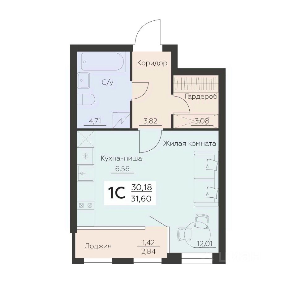 Общая площадь31,6 м²