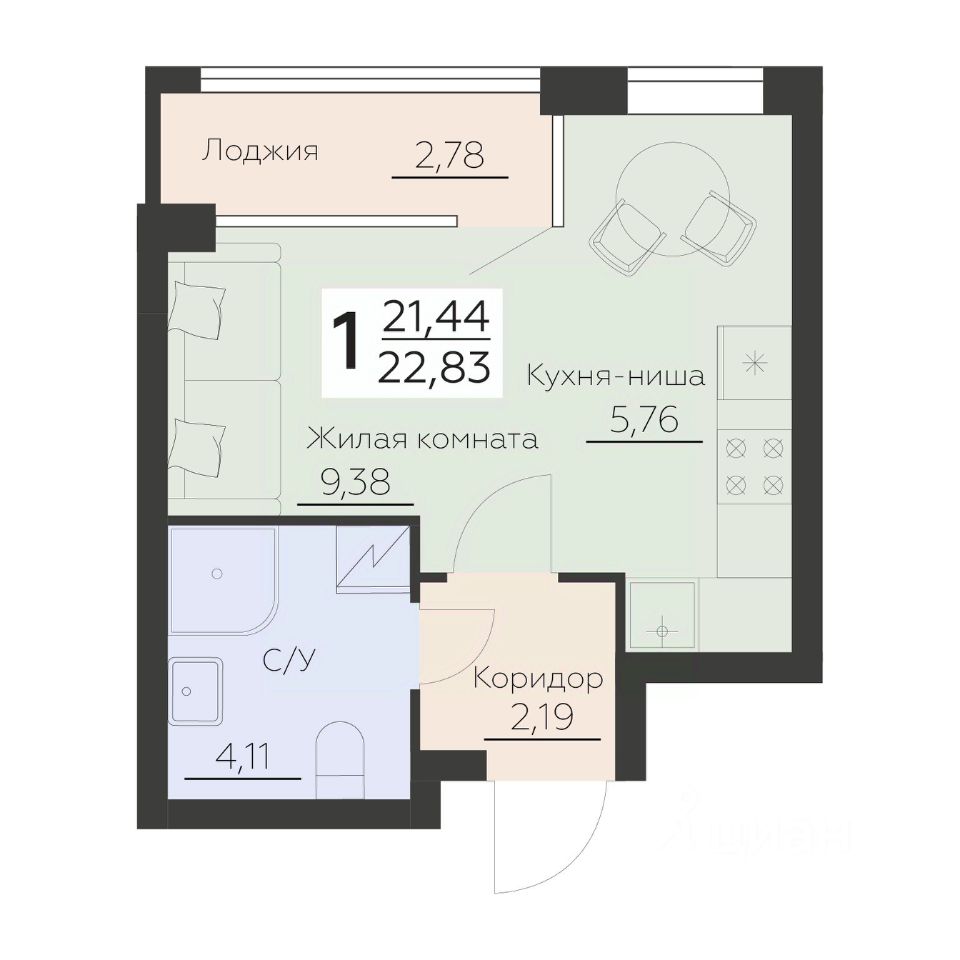 Общая площадь22,83 м²