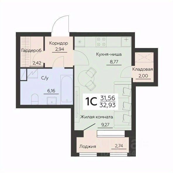 Общая площадь32,93 м²