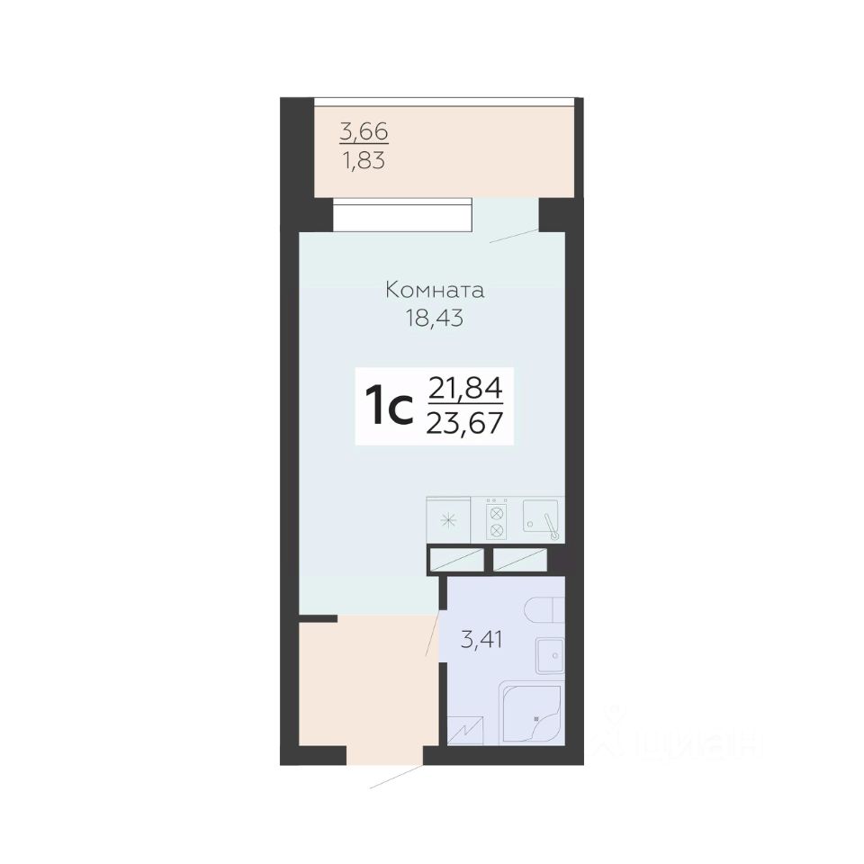 Общая площадь23,67 м²
