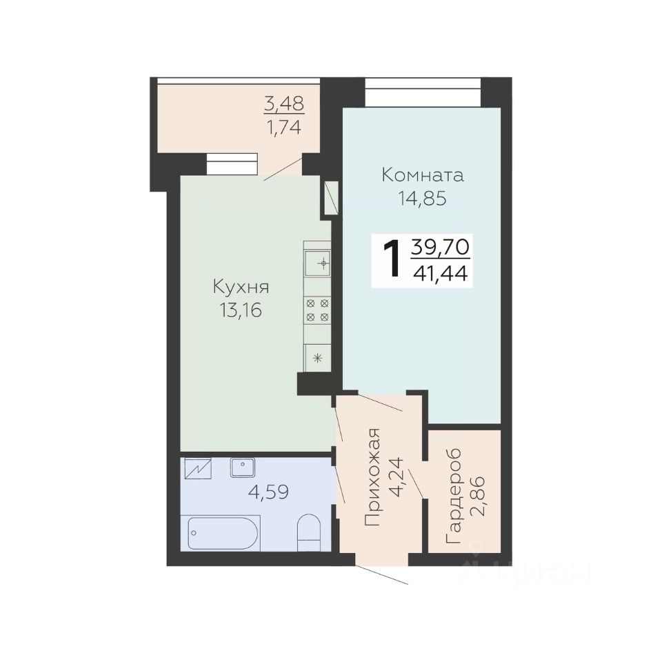 Общая площадь41,44 м²