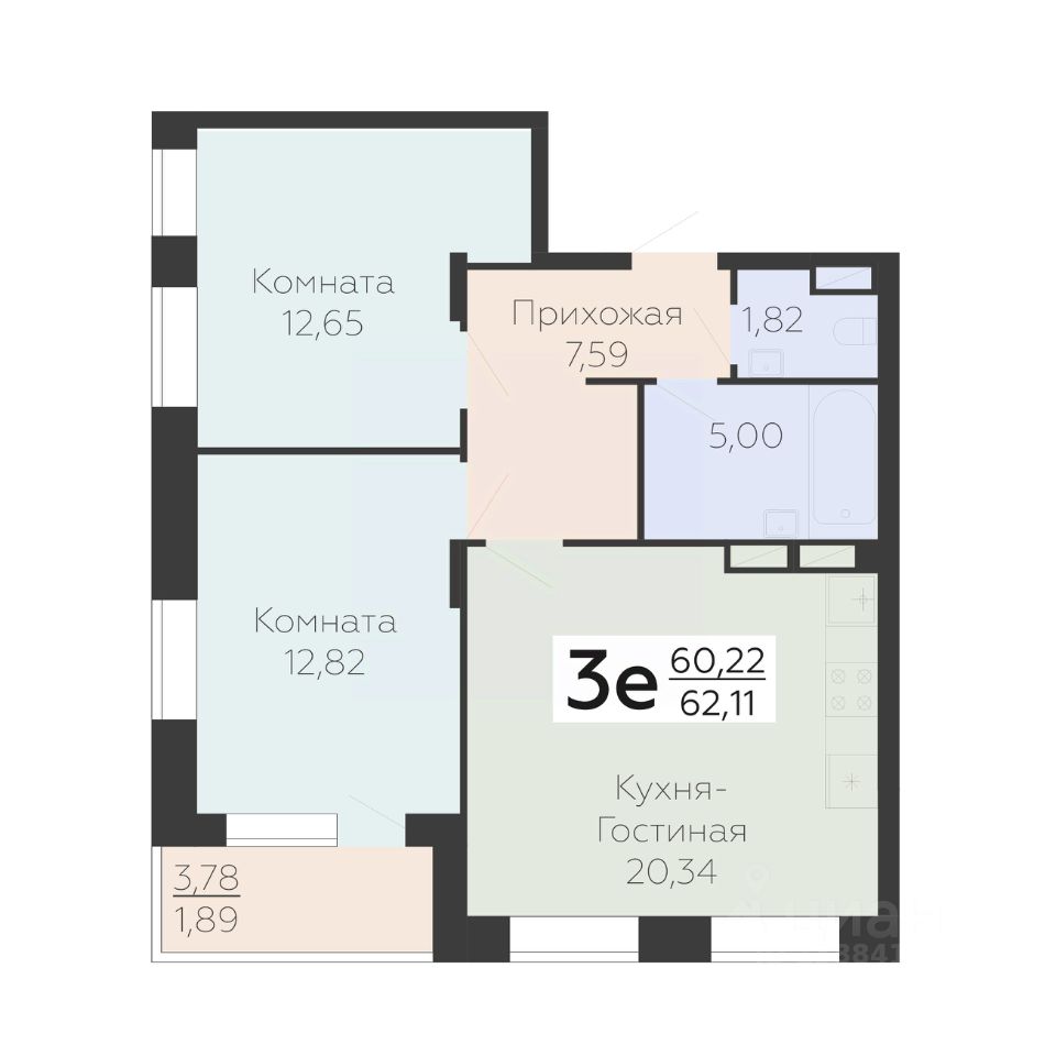 Общая площадь62,11 м²