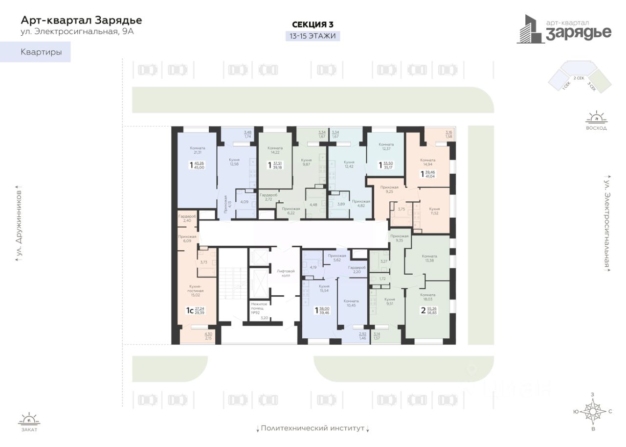 Арт-квартал "Зарядье" - это новый микрорайон, который расположен на пересечении улиц Электросигнальной и Дружинников, в 5 минутах ходьбы от остановки Политехнический институт. Арт-квартал возводится в тихой части Коминтерновского района рядом с крупнейшей городской артерией - Московский проспект. Благодаря своему удачному расположению путь до центра города займет всего 10 минут. Помимо транспортной доступности в районе активно развита инфраструктура. Здесь уже много школ и детских садов, высших учебных заведений, работают поликлиники, спортивные секции и прочее. Рядом — магазины и торговые центры. В планах города Воронежа создать дорогу-дублер Московского проспекта которая будет проходить по улице Солнечной. Внутри комплекса появится приватный парк для жителей, где можно гулять, играть на детских и спортивных площадках. Пространство будет разделено на функциональные зоны. Детские площадки, игровые для подростков, зоны отдыха и комьюнити, воркаут-площадка, поле для мини-гольфа. На первых этажах со стороны улицы расположены торговые и офисные помещения. Они предусмотрены под полезные сервисы для жителей: магазины, аптеки, кафе. Арт-квартала "Зарядье" состоит из трех зданий переменной этажности соединенным единым двором-парком, и оснащённый просторным подземным паркингом. Квартиры с возможностью выбора отделки — стандарт и бизнес-класс. Покупая квартиру в ГК Развитие, вы получаете дополнительно БЕСПЛАТНО: - помощь в одобрении и получении ипотеки с минимальной процентной ставкой. - ПОЛНОЕ ЮРИДИЧЕСКОЕ СОПРОВОЖДЕНИЕ сделки купли-продажи - Помощь в реализации МАТЕРИНСКОГО капитала. - Консультация и показ объекта в любое УДОБНОЕ ВРЕМЯ - Окажем помощь в ПОДГОТОВКЕ И СБОРЕ ВСЕХ ДОКУМЕНТОВ, необходимых для купли-продажи. - ДЕНЕЖНЫЕ сертификаты от наших партнеров: • на покупку сантехники и благоустройства ванной комнаты в размере 50000р. • на покупку мебели в размере 30000р. • на изготовление корпусной мебели в размере 10000р. • 5 месяцев интернета и ТВ и многие другие. Возможно, вы искали: купить квартиру студию, квартира рядом с московским проспектом, купить квартиру рядом с московским проспектом, купить квартиру на московском проспекте, купить однушку, купить двушку, купить трешку, акции и скидки на новостройки, квартира в центре, купить квартиру в ипотеку в коминтерновском районе, квартира в коминтерновском районе, купить квартиру в коминтерновском районе, новостройка в центре, новостройка в коминтерновском районе, купить квартиру в новом доме, купить квартиру в Воронеже, квартира в клубном ЖК Зарядье, купить квартиру в ЖК Зарядье, стоимость квартиры в центре, квартира в Воронеже, купить квартиру в Воронеже, квартиры в новостройке с паркингом, квартиры от застройщика без посредников, недвижимость Воронеж, инвестиции купить квартиру в новостройке, новостройки сменить квартиру, квартиры в строящемся доме, новостройки с отделкой, первичное жилье в новостройке, квартиры в новостройке без посредников, новостройки с рассрочкой, квартиры в новостройк