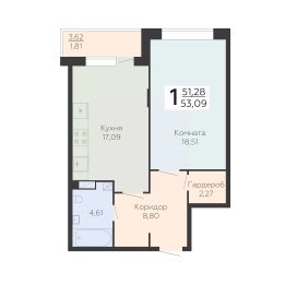 Общая площадь53,09 м²