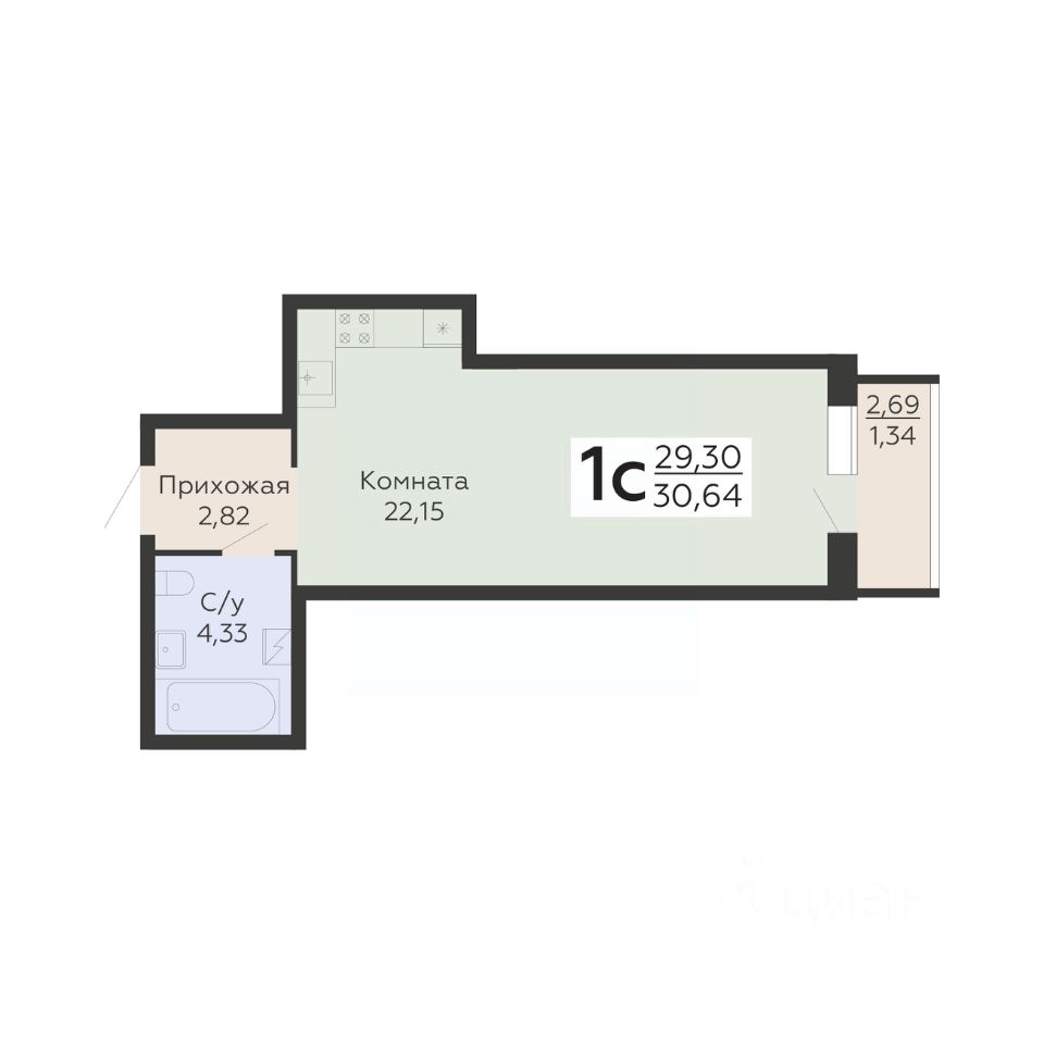 Общая площадь30,64 м²