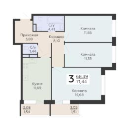 Общая площадь71,44 м²