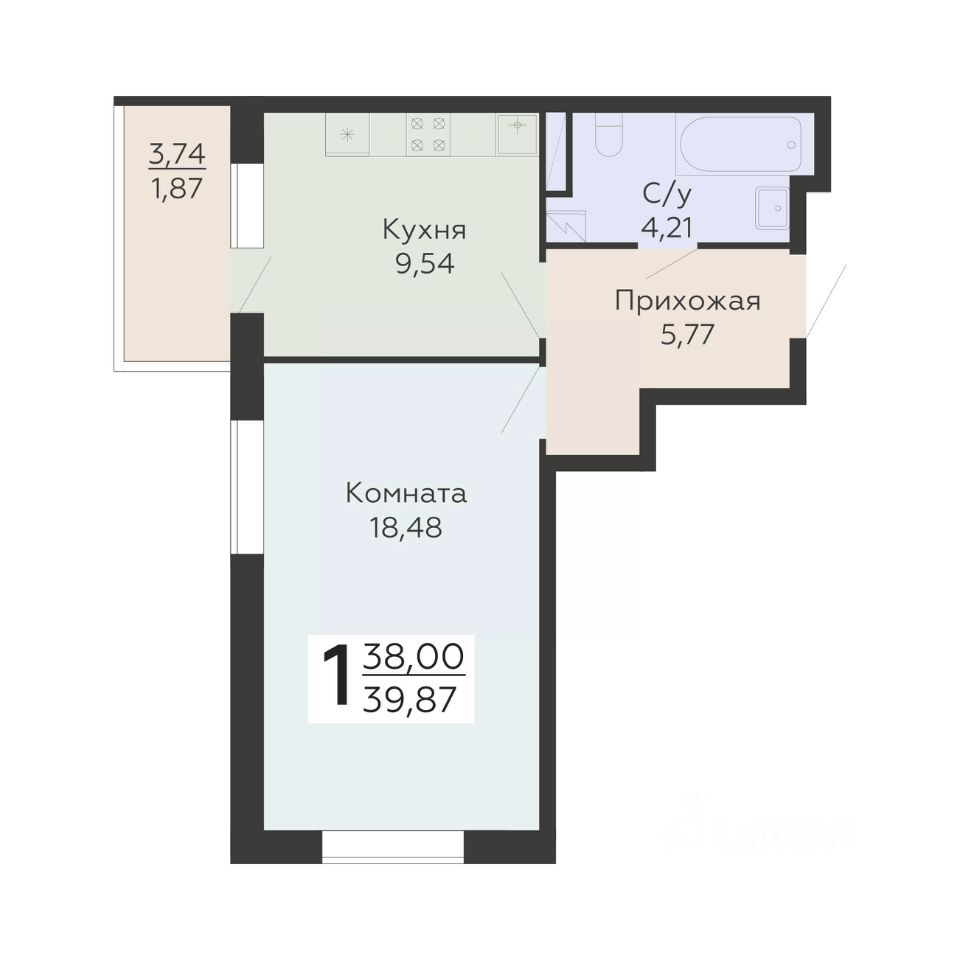 Общая площадь39,87 м²