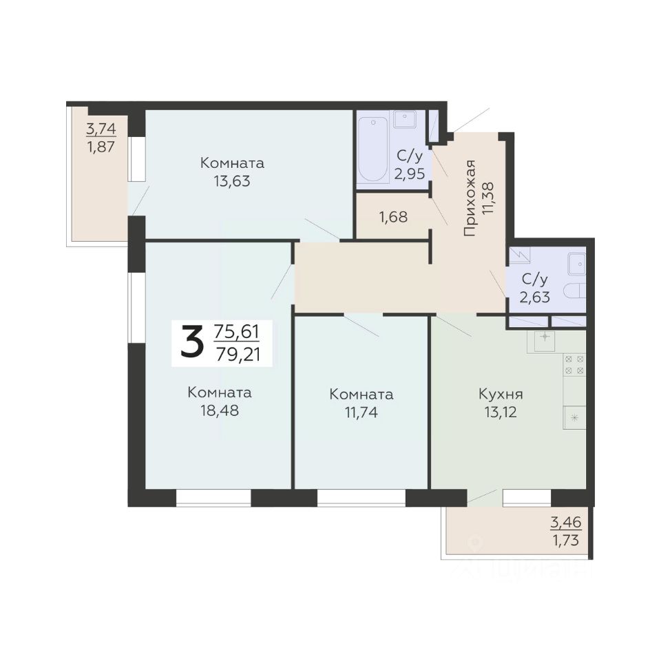 Общая площадь79,21 м²