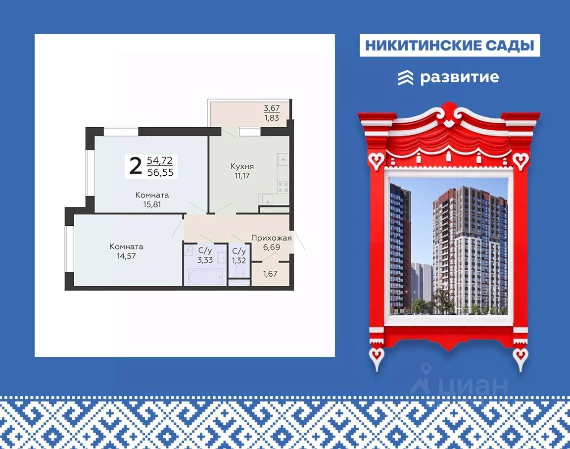 Продается 2-комнатная квартира 56,55 кв.м. на 19 этаже. Жилой Комплекс "Никитинские сады" — это самодостаточный микрорайон, расположенный на тихой территории рядом с крупной городской артерией улицей Антонова-Овсеенко.