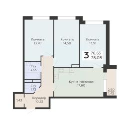 Общая площадь78,08 м²
