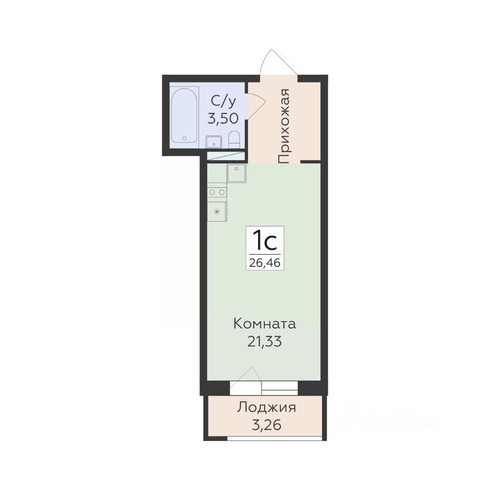 Общая площадь26,46 м²