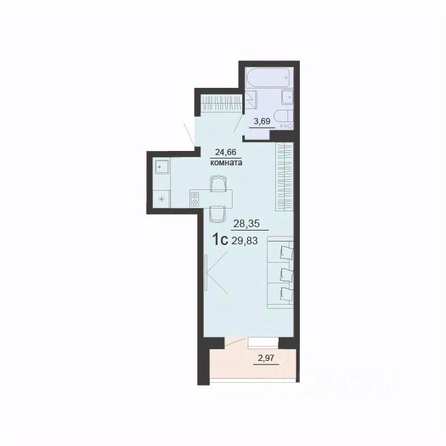Общая площадь29,83 м²