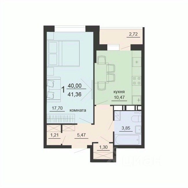 Общая площадь41,36 м²