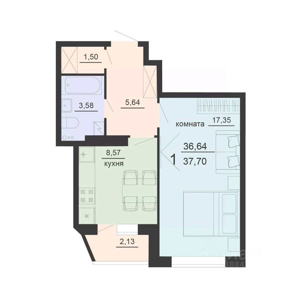 Общая площадь37,7 м²